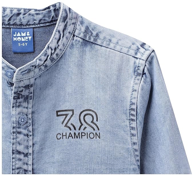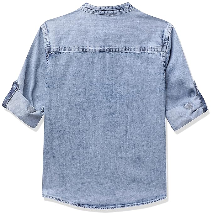 Amazon Brand – Symbol Boys 100% Cotton Mandarin Denim Shirt | Full Sleeves | Regular Fit | Age 2-14 Years