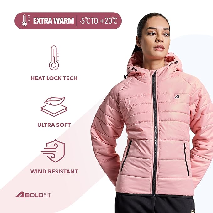 Boldfit jacket for woman puffer winter jacket for woman standard length jackets for women stylish latest hooded winter wear jackets for women cozy jerkins for ladies