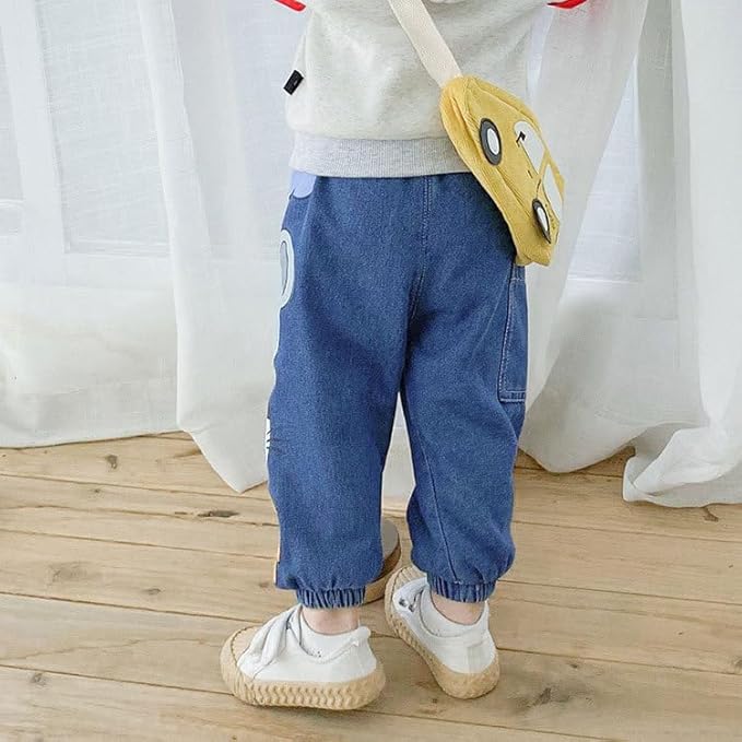 Googo Gaaga Boys Mid Rise Googa Gaaga Denim Joggers With Cute Cartoon Prints | Soft Elastic Waist Jeans Pants | Casual Trousers Stylish Playtime Outfits