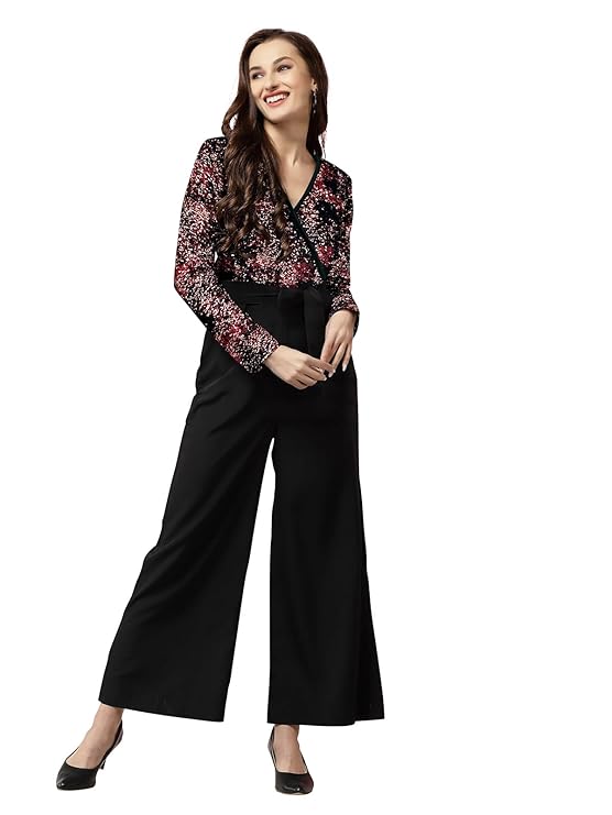 LONDON BELLY Women dress | jumpsuits for women stylish | black white floral print | geometric pattern | snake print V-neckline | blue floral | black maroon sequin jumpsuits casual formal