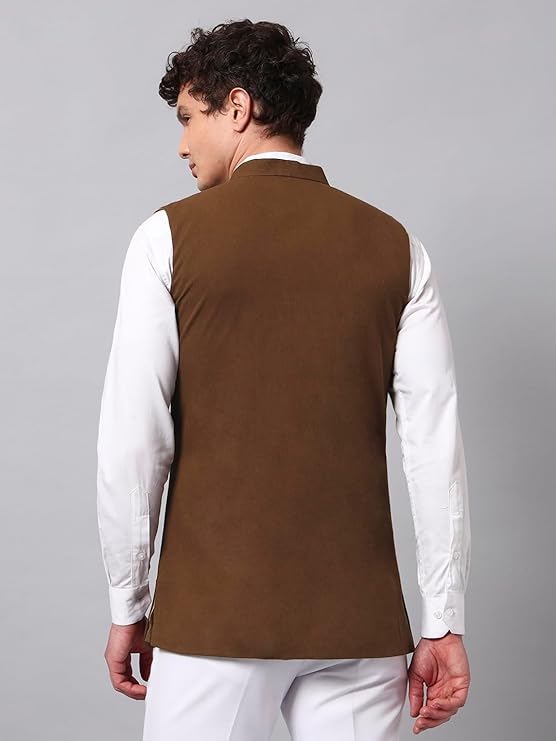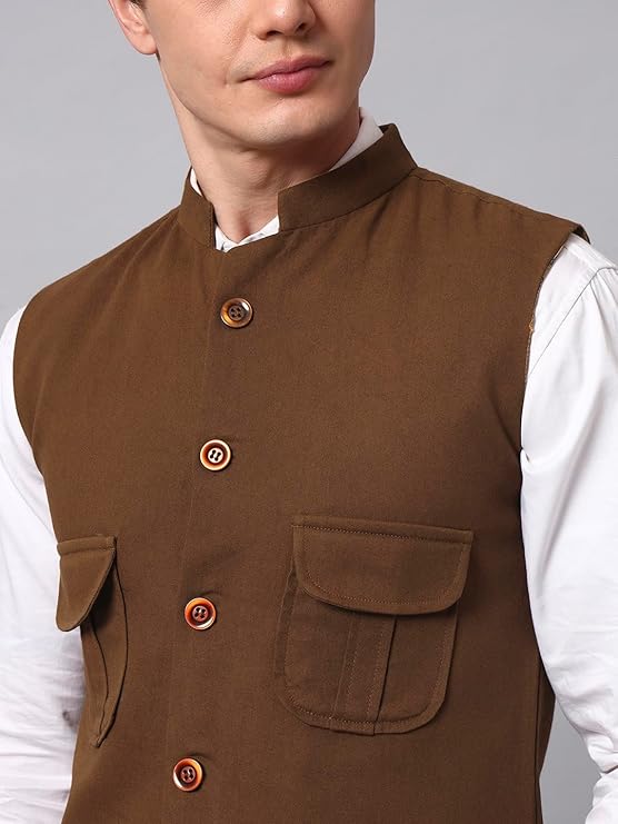 NATURE CRAFT Men’s Twill Cotton Nehru Jacket with 4 Pockets | Regular Fit Waistcoat
